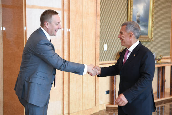 Встреча Президента Республики Татарстан Р.Н.Минниханова с заместителем президента– председателя правления ВТБ 24 (ПАО) Вячеславом Викторовичем Воробьевым. Фото: Михаил Фролов