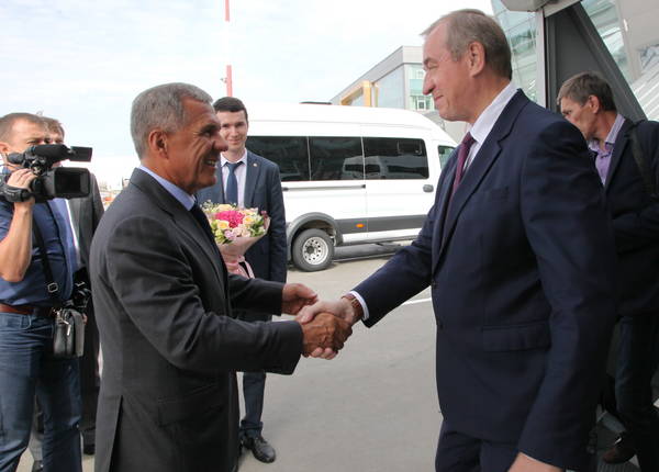Прибытие в Республику Татарстан Губернатора Иркутской области Сергея Георгиевича Левченко. Встречает Президент Республики Татарстан Р.Н. Минниханов.: фото Михаила Козловского