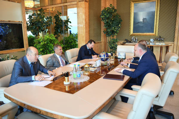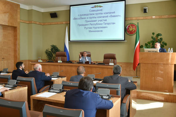 Встреча Президента Республики Татарстан Р.Н.Минниханова с руководством группы компаний «ВессоЛинк» и группы компаний «Вавиот».фото Р.Кадыров.