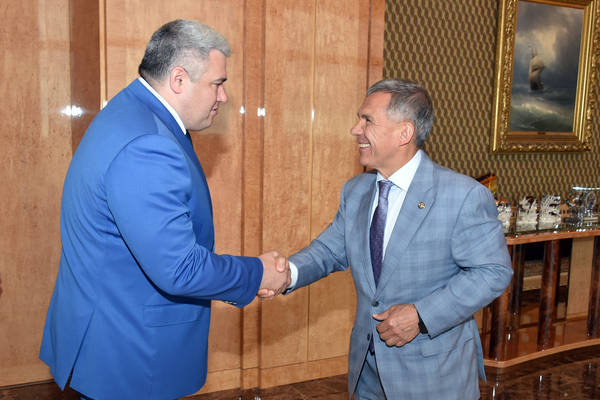 Встреча Президента Республики Татарстан Р.Н.Минниханова с начальником Главного управления по обеспечению безопасности дорожного движения Министерства внутренних дел Российской Федерации Михаилом Юрьевичем Черниковым.фото Р.Кадыров.