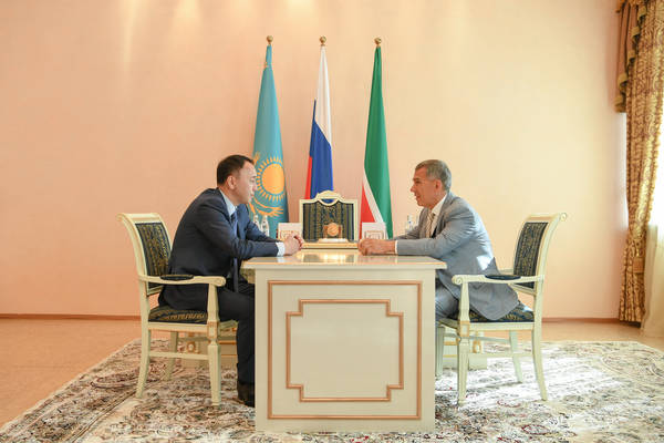 Встреча Президента Республики Татарстан Р.Н.Минниханова с Акимом Костанайской области Архимедом Мухамбетовым и активистами татарских общественных организаций Республики Казахстан. Фото Марсель Бадыкшин