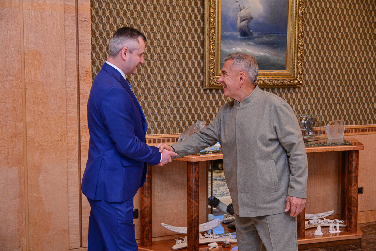 Встреча Раиса Республики Татарстан Р.Н.Минниханова с председателем Комитета Государственной Думы Федерального Собрания Российской Федерации по строительству и жилищно-коммунальному хозяйству Сергеем Александровичем Пахомовым