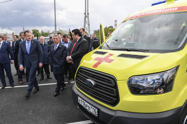 Вручение Президентом Республики Татарстан Р.Н. Миннихановым автомобилей станции скорой медицинской помощи г. Казани. Фото Марсель Бадыкшин
