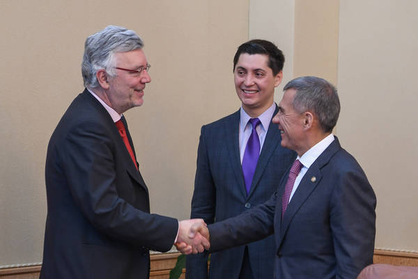 Встреча Президента Республики Татарстан Р.Н. Минниханова с Чрезвычайным и Полномочным Послом Королевства Бельгии в Российской Федерации Жаном Артуром Режибо. Фото Марсель Бадыкшин