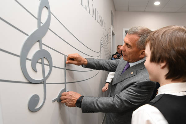 Посещение Президентом Республики Татарстан Р.Н. Миннихановым Республиканского дома ребенка и Детской музыкальной школы № 5 после капитального ремонта в рамках мероприятий, посвященных Дню защиты детей. Фото: Михаил Фролов