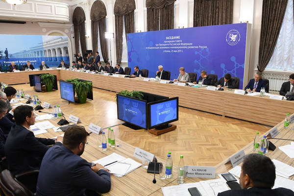 Заседание президиума Совета при Президенте Российской Федерации по модернизации экономики и инновационному развитию России по вопросу о развитии студенческого технологического предпринимательства. Проводит Председатель Правительства Российской Федерации Д.А. Медведев. Принимает участие Президент Республики Татарстан Р.Н. Минниханов. Фото Марсель Бадыкшин