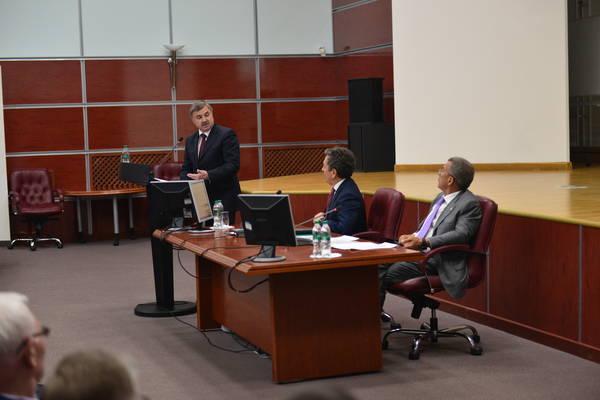 Заседание "круглого стола" на тему: "Развитие нефтехимической промышленности и автомобилестроения" в рамках выездного заседания Комитета Государственной Думы РФ по экономической политике, промышленности, инновационному развитию и предпринимательству. Принимает участие Президент Республики Татарстан Р.Н. Минниханов. Фото Марсель Бадыкшин