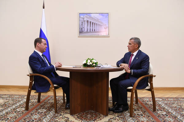 Беседа Председателя Правительства Российской Федерации Дмитрия Анатольевича Медведева с Президентом Республики Татарстан Р.Н. Миннихановым. Фото Марсель Бадыкшин