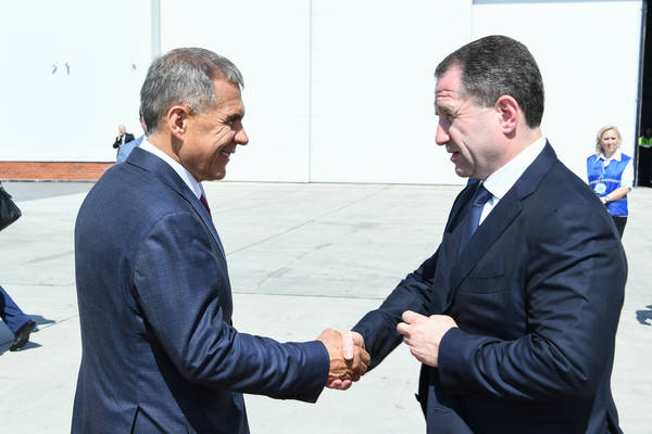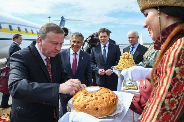 Прибытие в Республику Татарстан Премьер-министра Республики Беларусь Андрея Владимировича Кобякова. Встречает Президент Республики Татарстан Р.Н. Минниханов. Фото: Михаил Фролов