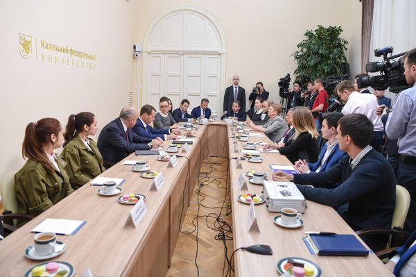 Встреча Председателя Правительства Российской Федерации Дмитрия Анатольевича Медведева со студентами. Принимает участие Президент Республики Татарстан Р.Н. Минниханов. Фото Марсель Бадыкшин