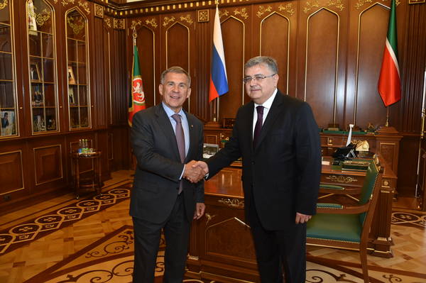 Встреча Президента Республики Татарстан Р.Н. Минниханова с Чрезвычайным и Полномочным Послом Турецкой Республики в России Хюсейином Дириозом.фото Р.Кадыров.