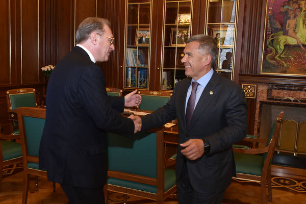 Встреча Президента Республики Татарстан Р.Н. Минниханова с заместителем Министра иностранных дел Российской Федерации Михаилом Леонидовичем Богдановым.фото Р.Кадыров.