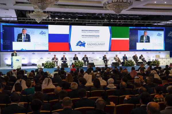Пленарное заседание IX Международного экономического саммита «Россия – исламский мир: «Kazansummit-2017»: «Сила в кооперации. Партнерские финансы как новый потенциал взаимодействия России и стран ОИС в контексте турбулентных международных экономических отношений» Принимает участие Президент Республики Татарстан Р.Н. Минниханов. Фото Марсель Бадыкшин
