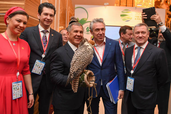 Обход Президентом Республики Татарстан Р.Н.Миннихановым выставки IX Международного экономического саммита «Россия – исламский мир: «Kazansummit-2017». Фото Марсель Бадыкшин