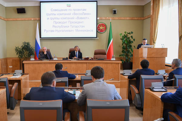 Совещание по проектам группы компаний «ВессоЛинк» и группы компаний «Вавиот». Проводит Президент Республики Татарстан Р.Н. Минниханов. Фото: Михаил Фролов