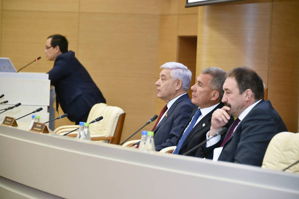 Лекция генерального директора АО «КИВИ» С.А. Солонина «Блокчейн – новая распределённая финансовая среда». Принимает участие Президент Республики Татарстан Р.Н.Минниханов.фото Р.Кадыров.