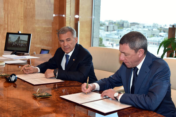 Встреча Президента Республики Татарстан Р.Н. Минниханова с Президентом, Председателем Наблюдательного совета ПАО «БАНК УРАЛСИБ» Владимиром Игоревичем Коганом. Подписание соглашения о сотрудничестве между Республикой Татарстан и ПАО «БАНК УРАЛСИБ».фото Р.Кадыров.