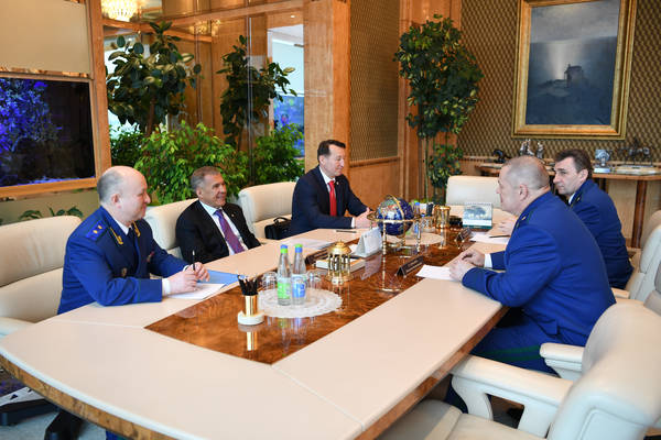 Встреча Президента Республики Татарстан Р.Н.Минниханова с Волжским межрегиональным природоохранным прокурором Вениамином Вениаминовичем Селифановым. Фото: Михаил Фролов