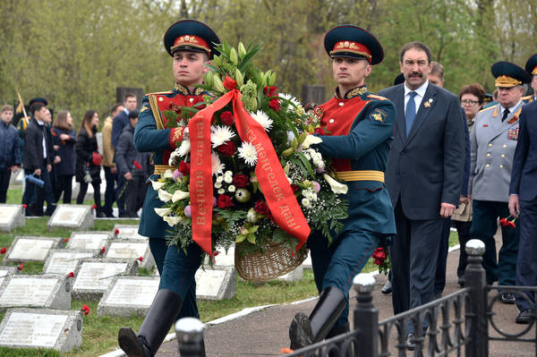 Торжественная церемония возложения цветов к воинским захоронениям и обелиску в память павших в годы Великой Отечественной войны 1941-1945 годов. Принимает участие Премьер-министр Республики Татарстан А.В. Песошин.фото Р.Кадыров.