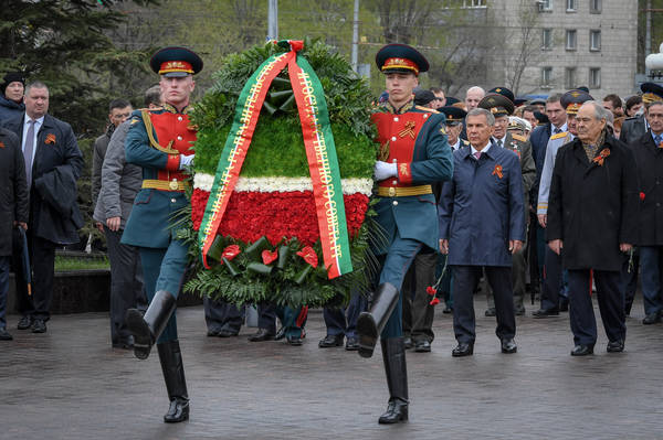 Возложение цветов и венков к Вечному огню Колоннады Мемориала Славы. Принимает участие Президент Республики Татарстан Р.Н. Минниханов. Фото Марсель Бадыкшин