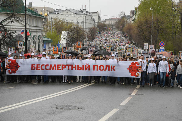 Торжественная акция «Бессмертный полк». Принимает участие Президент Республики Татарстан Р.Н. Минниханов. Фото Марсель Бадыкшин