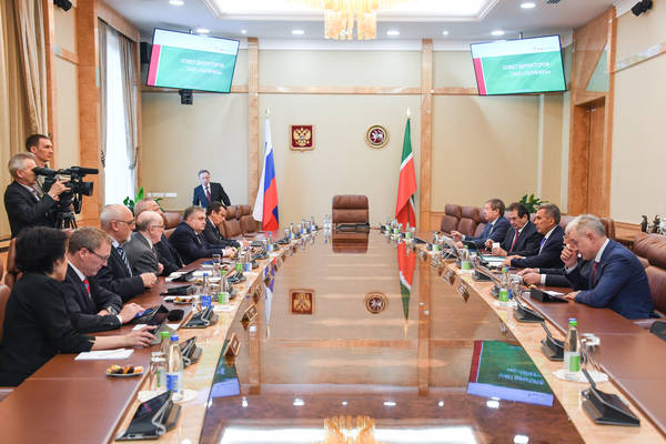 Встреча Президента Республики Татарстан Р.Н. Минниханова с Чрезвычайным и Полномочным Послом Австрийской Республики в Российской Федерации Эмилем Бриксом.фото Р.Кадыров.