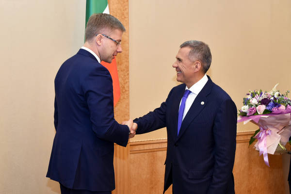 Встреча Президента Республики Татарстан Р.Н. Минниханова с мэром г. Риги Нилом Ушаковым.фото Кадыров Р.