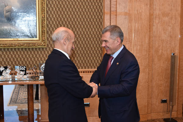 Встреча Президента Республики Татарстан Р.Н.Минниханова с президентом Международной федерации водных видов спорта Хулио Маглионе и исполнительным директорм Международной федерации плавания (FINA) Корнелем Маркулеску. фото Р.Кадыров.