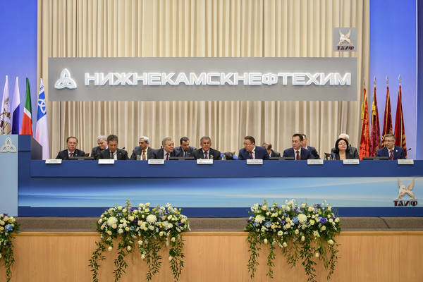 Годовое общее собрание акционеров ПАО "Нижнекамскнефтехим". Принимает участие Президент Республики Татарстан Р.Н. Минниханов. Фото Марсель Бадыкшин