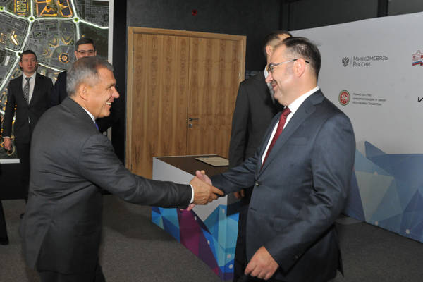 Встреча Президента Республики Татарстан Р.Н. Минниханова с Председателем Правления Пенсионного фонда Российской Федерации Антоном Викторовичем Дроздовым. Подписание Протокола о сотрудничестве и взаимодействии в сфере информационных технологий между Республикой Татарстан и Пенсионным фондом Российской Федерации. фото Р.Кадыров.
