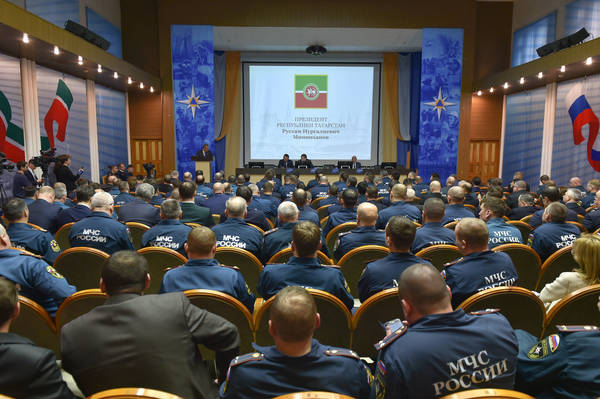 Расширенное совместное заседание коллегии Главного управления МЧС России по Республике Татарстан и МЧС Республики Татарстан по итогам деятельности в 2016 году и задачам на 2017 год. Принимает участие Президент Республики Татарстан Р.Н.Минниханов. Фото Марсель Бадыкшин
