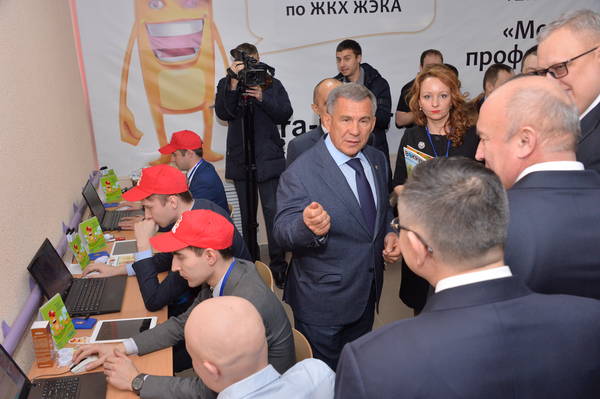 Посещение Президентом Республики Татарстан Р.Н.Миннихановым и генеральным директором ГК "Фонд содействия реформированию жилищно-коммунального хозяйства" К.Г. Цициным Казанского Строительного Колледжа. фото Р.Кадыров.