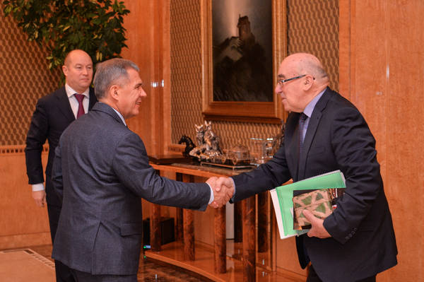 Работа Президента Республики Татарстан Р.Н. Минниханова по программе пребывания в Республике Татарстан Председателя Совета директоров ПАО "Газпром" Виктора Алексеевича Зубкова. Фото: Михаил Фролов