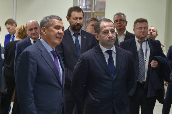 Посещение полномочным представителем Президента РФ в Приволжском федеральном округе (ПФО) М.Бабичем химического института КФУ. Сопровождает Президент Республики Татарстан Р.Н.Минниханов. Фото Марсель Бадыкшин