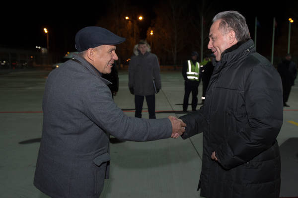 Прибытие в Республику Татарстан заместителя Председателя Правительства Российской Федерации по вопросам спорта, туризма и молодежной политики В.Л.Мутко. Встречает Президент Республики Татарстан Р.Н.Минниханов. Фото Марсель Бадыкшин