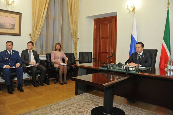 Заседание Совета по контролю за ситуацией в сфере оборота алкогольной и спиртосодержащей продукции в Республике Татарстан. Принимает участие Президент Республики Татарстан Р.Н. Минниханов. Фото Марсель Бадыкшин