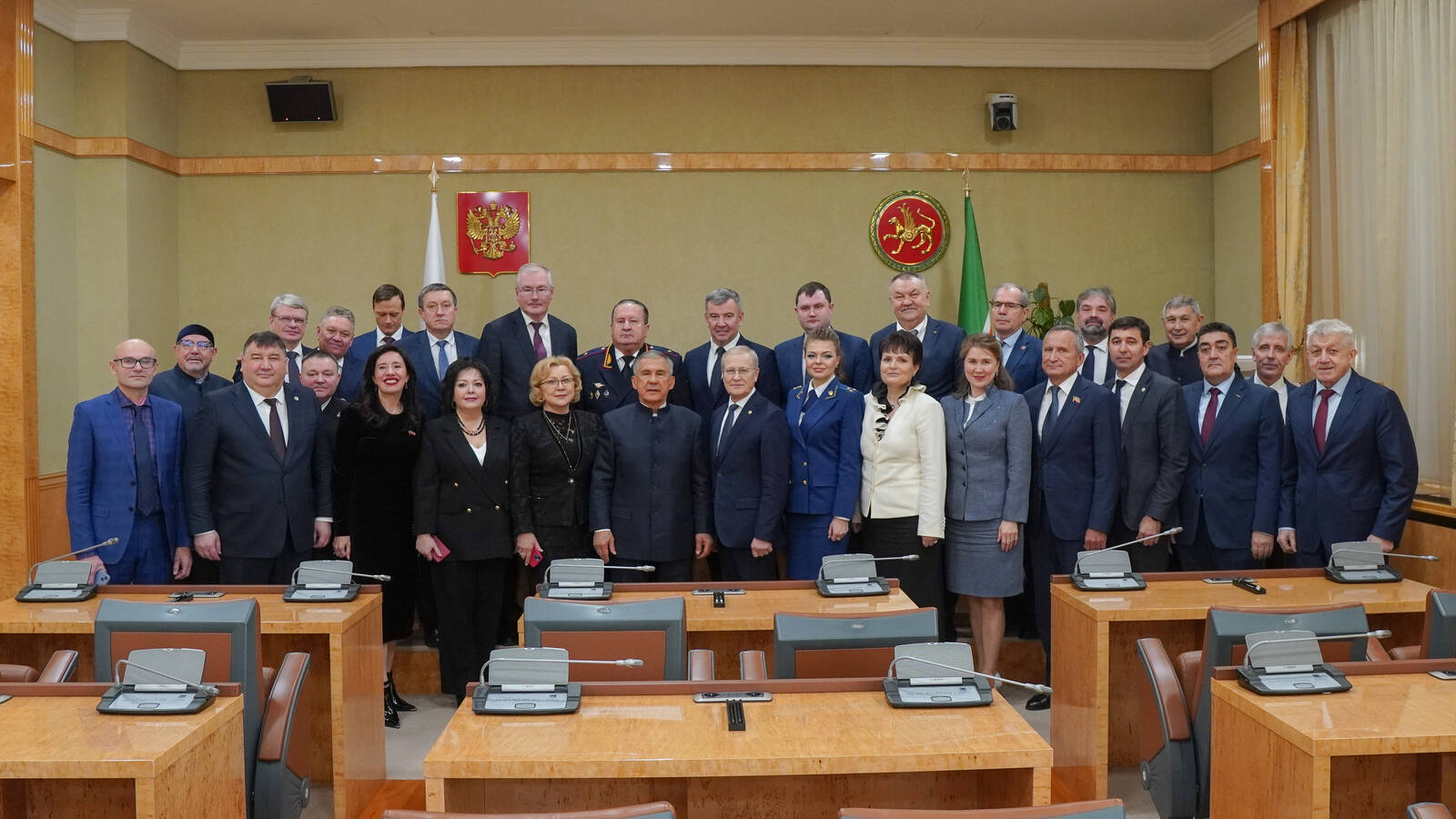 Торжественная церемония награждения лауреатов премии имени Б.И.Тихомирова. Принимает участие Раис Республики Татарстан Р.Н.Минниханов.