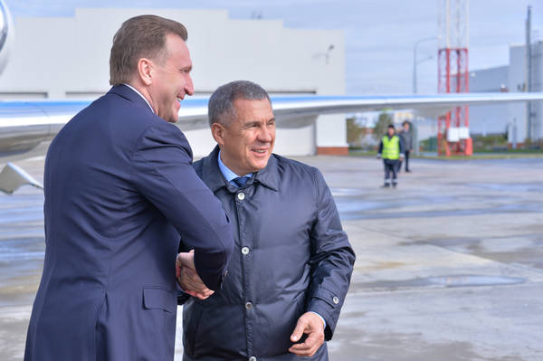 Прибытие в Республику Татарстан Первого заместителя Председателя Правительства Российской Федерации Игоря Ивановича Шувалова. Встречает Президент Республики Татарстан Р.Н.Минниханов. Фото: Михаил Фролов