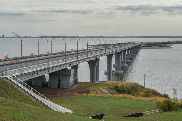 Открытие второго пускового комплекса I очереди строительства мостового переход через р. Каму на автодороге Казань – Чистополь – Бугульма – Оренбург. Принимают участие Министр транспорта Российской Федерации М.Ю. Соколов, Президент Республики Татарстан Р.Н. Минниханов. Фото Марсель Бадыкшин
