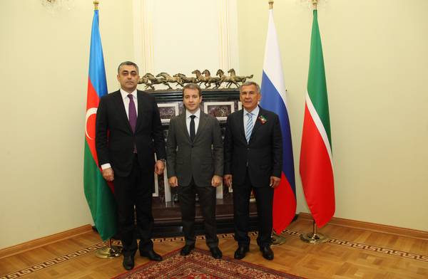 Встреча Президента Республики Татарстан Р.Н. Минниханова c Министром связи и высоких технологий Азербайджанской Республики Рамином Намиговичем Гулузаде. Принимает участие Министр связи и массовых коммуникаций Российской Федерации Н.А. Никифоров.: фото Михаила Козловского