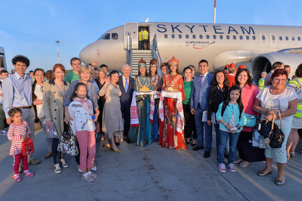 Торжественная встреча первого рейса Аэрофлота Казань - Франкфурт-на-Майне – Казань. Принимает участие Премьер-министр Республики Татарстан И.Ш.Халиков. Фото: Михаил Фролов