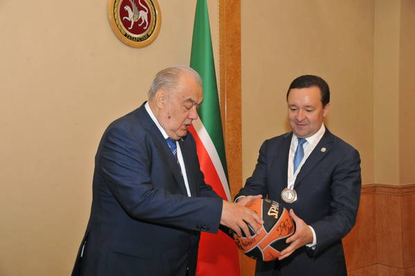 Чествование баскетбольного клуба «УНИКС» серебряного призера чемпионатов Единой лиги ВТБ и России сезона 2015/2016. Принимает участие Премьер-министр Республики Татарстан И.Ш.Халиков.фото Р.Кадыров.