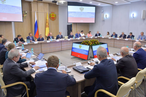 Совместное выездное совещание Секретаря Совета Безопасности Российской Федерации и полномочного представителя Президента Российской Федерации в Приволжском федеральном округе с участием глав субъектов Российской Федерации, находящихся в пределах Приволжского федерального округа. Принимает участие Президент Республики Татарстан Р.Н. Минниханов. Фото: Михаил Фролов