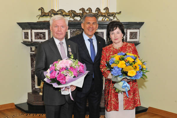 Чествование Президентом Республики Татарстан Р.Н.Миннихановым поэта Рината Максумовича Харисова и композитора Резеды Закиевны Ахияровой.фото Р.Кадырова.