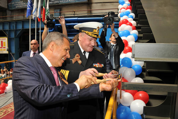 Торжественная церемония закладки патрульного корабля проекта 22160 зав№164. Принимают участие Главнокомандующий ВМФ Российской Федерации адмирал Владимир Иванович Королёв и Президент Республики Татарстан Р.Н.Минниханов.фото Р.Кадыров.