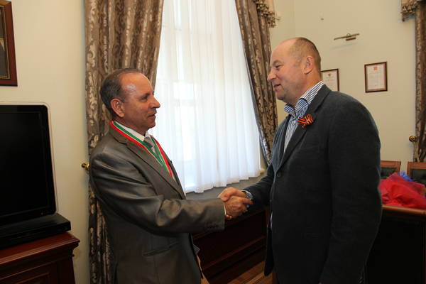 Поздравление Руководителем Аппарата Президента Республики Татарстан А.А.Сафаровым главного тренера команды по хоккею на траве "Динамо Казань" А.А.Маргаряна с юбилеем: фото Михаила Козловского