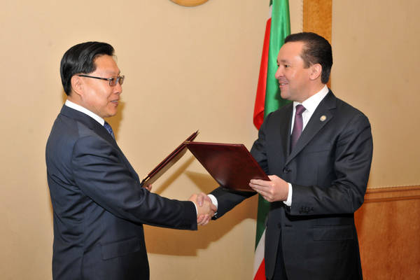 Встреча Премьер-министра Республики Татарстан И.Ш.Халикова с Секретарем партийного комитета провинции Сычуань, начальником Постоянного комитета Всекитайского собрания народных представителей г-на Ван Дунмином.фото Р.Кадыров.