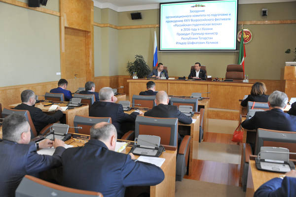 Заседание организационного комитета по подготовке и проведению XXIV Всероссийского фестиваля «Российская студенческая весна» в 2016 году. Проводит Премьер-министр Республики Татарстан И.Ш.Халиков.