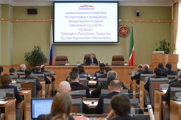 Заседание организационного комитета по подготовке и проведению международного ралли «Шелковый путь 2016» Принимает участие Президент Республики Татарстан Р.Н. Минниханов.