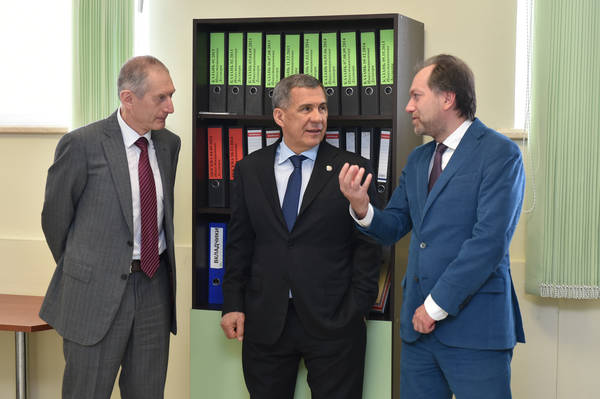 Посещение Президентом Республики Татарстан Р.Н. Миннихановым и первым заместителем Председателя Центрального Банка России Алексеем Юрьевичем Симановским финансового дома «Амаль». Фото Марсель Бадыкшин